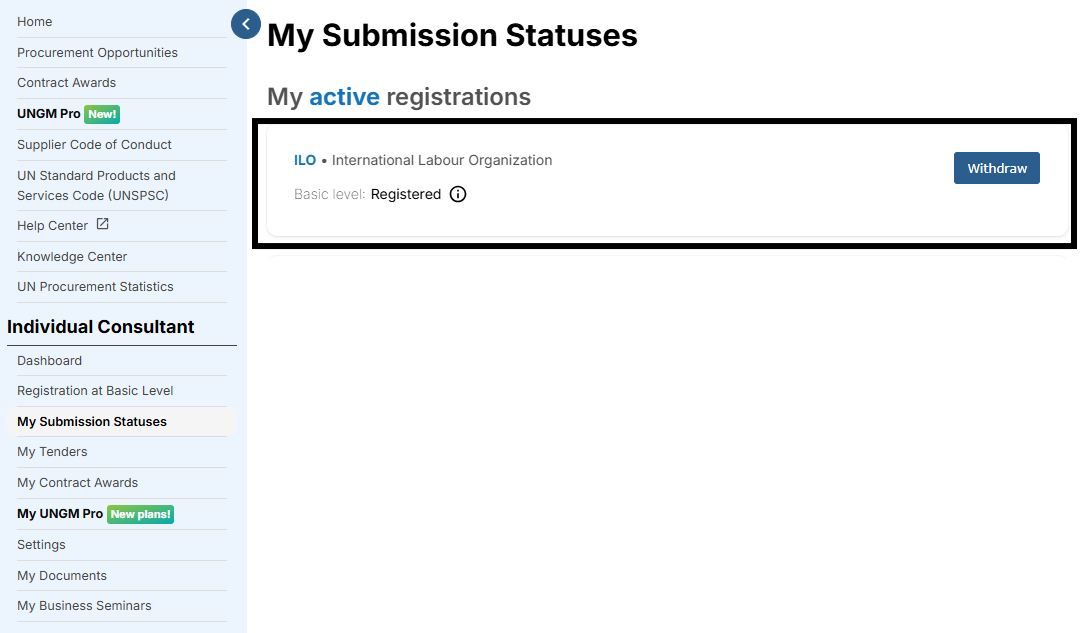 3. Check under My Submission Statuses to ensure that the status with ILO is Registered.